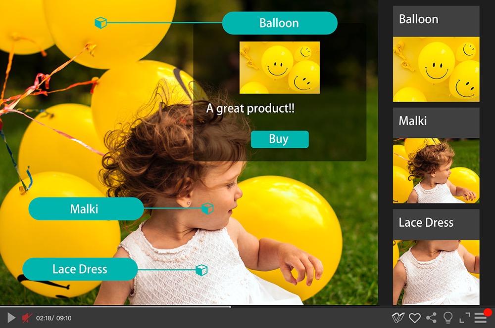 VisualNext interactive video technology enables audiences to click on interested objects in the video to pop up relevant information, purchase goods, make calls, fill out forms, scan QR codes, etc.... without downloading software or Apps, Interact with our videos in Effective platforms and devices. Effectively reduce the audience's bounce rate, maximize the effectiveness of video marketing, by combining the user's consumption behavior through the viewing data, making videos the best tool for analyzing consumer behavior and making overall marketing decisions.